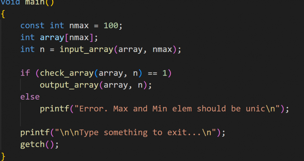 Язык С. Поменять местами  макс и мин элемент в массиве, если они уникальны Лаба написана в Visual Studio для курса информатики СМ 7. Сдана Тассову К.Л. .