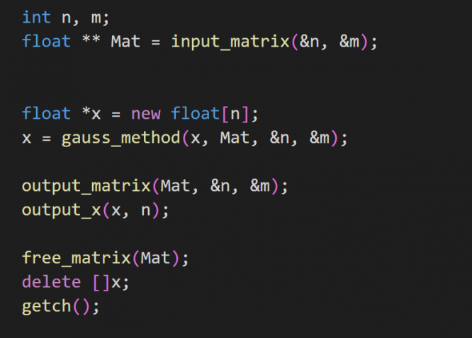 Для студентов МГТУ им. Н.Э.Баумана по предмету ИнформатикаЯзык С. Решить СЛАУ методом ГауссаЯзык С. Решить СЛАУ методом Гаусса