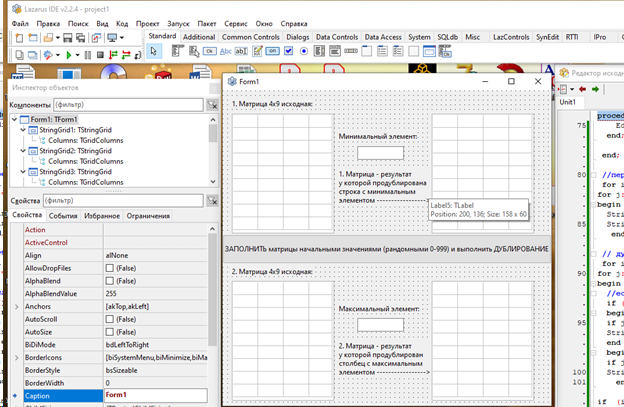 Лабораторная работа №7. Вариант 21. ЛР Многомерные массивы Цель работы: Научится создавать и обрабатывать статические и динамические двумерные (многомерные) массивы. / задача из РК программа в Pascal Lazarus. В архиве также файл с объяснениями работы программы. Тэги: Программа на Lazarus, PascalObject, Pascal, Delphi, Turbo Delphi, Pascal ABC / Анимация, ЛР, РК, ДЗ, 2023 Условия для программы, под которые она выполнена: Задания для самостоятельной работы 21. Дана матрица размера 4 x 9. Продублировать строку (столбец) матрицы, содержащий ее минимальный (максимальный) элемент. Программа в сделанном виде: Лабораторная работа 7 Многомерные массивы Цель работы: Научится создавать и обрабатывать статические и динамические двумерные (многомерные) массивы.