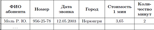 1. Создать структуру с данными по таблице 10: Таблица 10. Сведения о телефонных звонках.