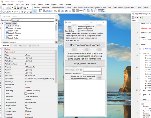Цель работы: познакомиться с возможностями языка Free Pascal для работы с файлами и с компонентами Lazarus, предназначенными для выбора файла.