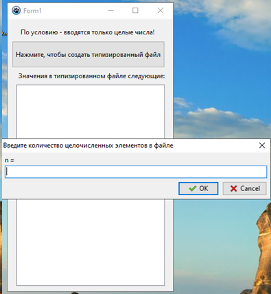 6) Создать типизированный файл, куда записать и целых чисел. Из файла целых чисел сформировать массив, записав в него только чётные компо- ненты, находящиеся до минимального элемента. 7) Создать типизированный файл, куда записать и вещественных чисел. Сде- лать массив из элементов исходного файла, внеся в него числа, превосхо- дящие среднее значение среди положительных значений файла. 8) Создать типизированный файл, куда записать и целых чисел. Из исходного файла сформировать массив, записав в него числа, расположенные в файле до максимального элемента и после минимального. 9) Создать типизированный файл, куда записать и целых чисел. Из исходного файла сформировать массив, внести в него простые и совершенные числа, расположенные в файле между минимальным и максимальным элемента- ми.