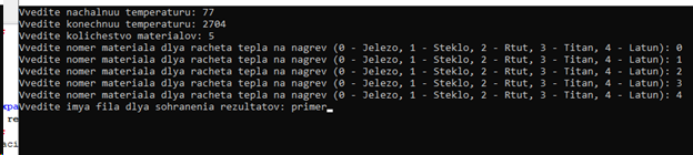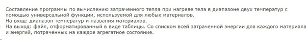 Теплоемкость - Составление программы по вычислению затраченного тепла при нагреве тела в диапазоне двух температур с помощью универсальной функции, используемой для любых материалов. На вход: диапазон температур и названия материалов. На выход: файл, отфо