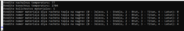 Описание: Вариант: 77...2704[\'Железо\', \'Стекло\', \'Ртуть’, \'Титан\', \'Латунь\'] Программа в сделанном виде: .
