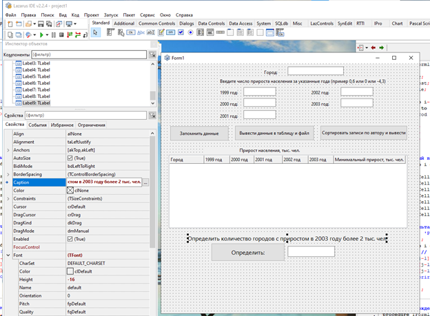 Работа со строками и записями - Создать структуру с данными по таблице 1. Добавить и вычислить в структуре поле «Минимальный прирост». Определить количество городов с приростом в 2003 году более 2 тыс. чел. Упорядочить записи по алфавиту названия городов.