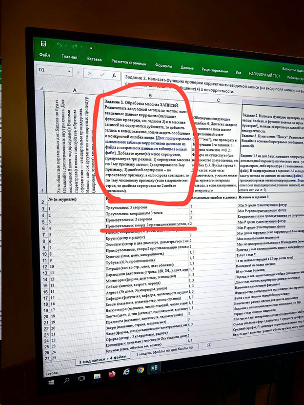 1й функции 1го задания. 1. Введено значение <=0.2. Фигура не существует (см. неравенство треугольника, см ошибка 1) 3. Пустая строка 4. Для часов: если часы механические, у них не может быть нулевого интервала дозавода, а если электронные, то ненулевого  Обозначим следующие ошибки: 0. Для всех: введено не числовое поле или не разрешенный ответ ■ (\"да\"/\"нет\"), это проверять в Ій функции 1го задания. 1. Введено значение <=0. 2. Фигура не существует (см. а неравенство треугольника, см. ошибка 1) 3. Пустая строка 4. Для часов: если часы > механические, у них не может быть нулевого интервала дозавода, а если электронные, то ненулевого Задание 2. Написать функцию проверки корректности вводимой записи (на вход: поля записи, на выход: boolean, в функции вывода на экран нет, только подготовка промежуточного результата проверки!), вызвать её при вводе каждой записи и в случае ошибки вывести сообщение(я) о некорректности.