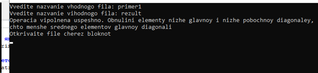 В начале файла записаны 2 целых числа-линейные размеры матрицы, затем нужное число действительных чисел-элементов матрицы. Если матрица квадратная, то нужно обнулить те элементы ниже главной и ниже побочной диагоналей, что меньше среднего элементов главной диагонали.