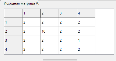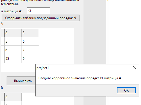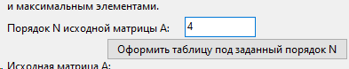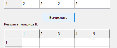 При нажатии на первую кнопку создается матрица с указанным порядком N, вы ее вручную заполняете, далее при нажатии на вторую кнопку создается вторая матрица-результат