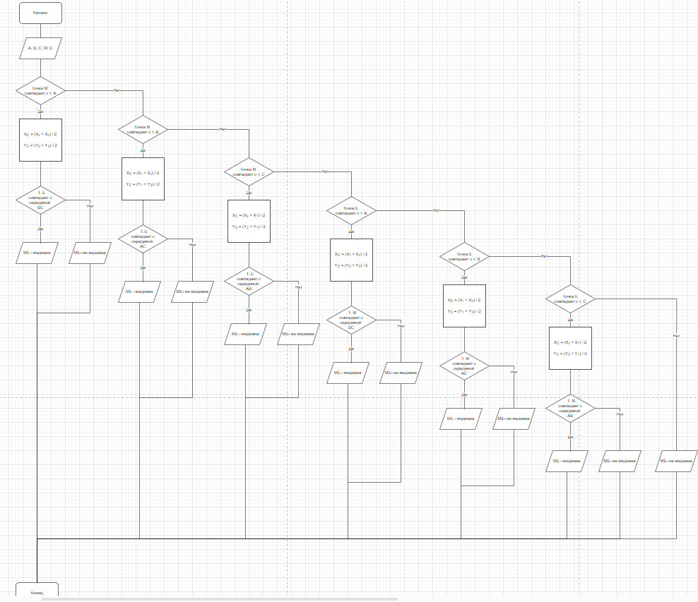 Для студентов МГТУ им. Н.Э.Баумана по предмету ИнформатикаОпределить, является ли отрезок медианой заданного треугольника, при известных координатах вершин треугольника и этого отрезкаОпределить, является ли отрезок медианой заданного треугольника, при известных координатах вершин треугольника и этого отрезка