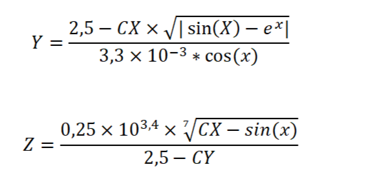 Вычислить значения переменных по заданным расчетным формулам и наборам данных:
