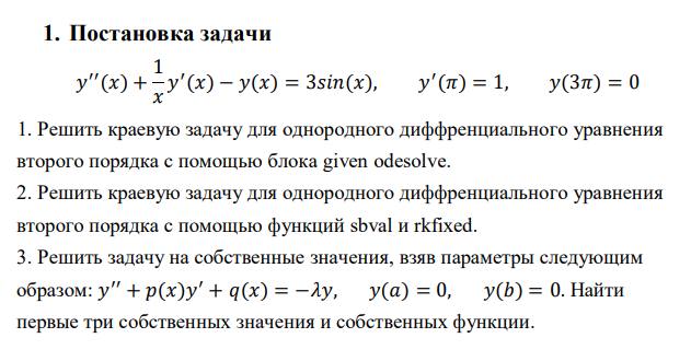 1. Решить краевую задачу для однородного диффренциального уравнения второго порядка с помощью блока given odesolve.
