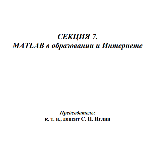 Для студентов НГТУ по предмету ИнформатикаСекция 7 - MATLAB в образовании и ИнтернетеСекция 7 - MATLAB в образовании и Интернете