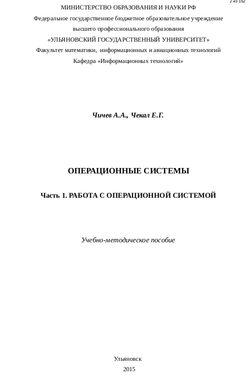 пособие. / Чичев А.А., Чекал Е.Г. – Ульяновск: УлГУ, 2015. – 162 с