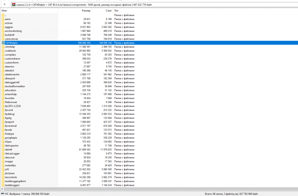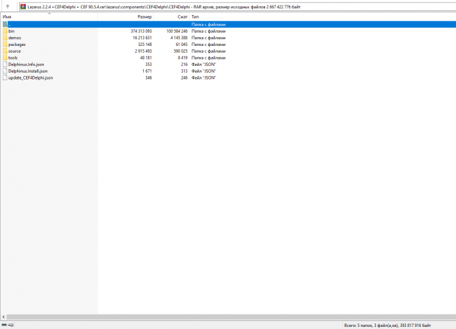 Portable Lazarus 2.2.4 + CEF4Delphi + CEF 90.5.4 Lazarus со встроенным (установленным) пакетом CEF4Delphi_Lazarus 90.5.4 Также установлен бинарный файл cef_binary_90.5.4+gc6a4331+chromium-90.0.4430.72_windows64