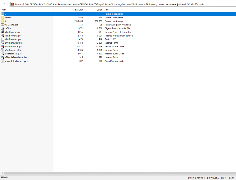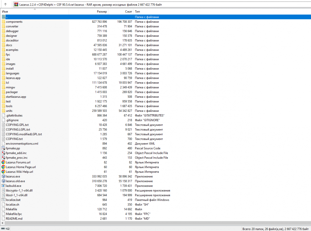 Полная сборка установленная (Portable) Lazarus 2.2.4 + CEF4Delphi + CEF 90.5.4 Lazarus со встроенным (установленным) пакетом CEF4Delphi_Lazarus 90.5.4 Также установлен бинарный файл cef_binary_90.5.4+gc6a4331+chromium-90.0.4430.72_windows64 Теперь можно открывать демо-приложения находящиеся в сборке, можете создать браузер в Lazarus и так далее. Этот файл представляет собой полную сборку установленного (Portable) Lazarus 2.2.4, интегрированного с CEF4Delphi и Chromium Embedded Framework (CEF) версии 90.5.4. Сборка включает Lazarus с предварительно установленным пакетом CEF4Delphi_Lazarus 90.5.4, обеспечивая мгновенную готовность к разработке веб-ориентированных приложений прямо из Lazarus IDE.