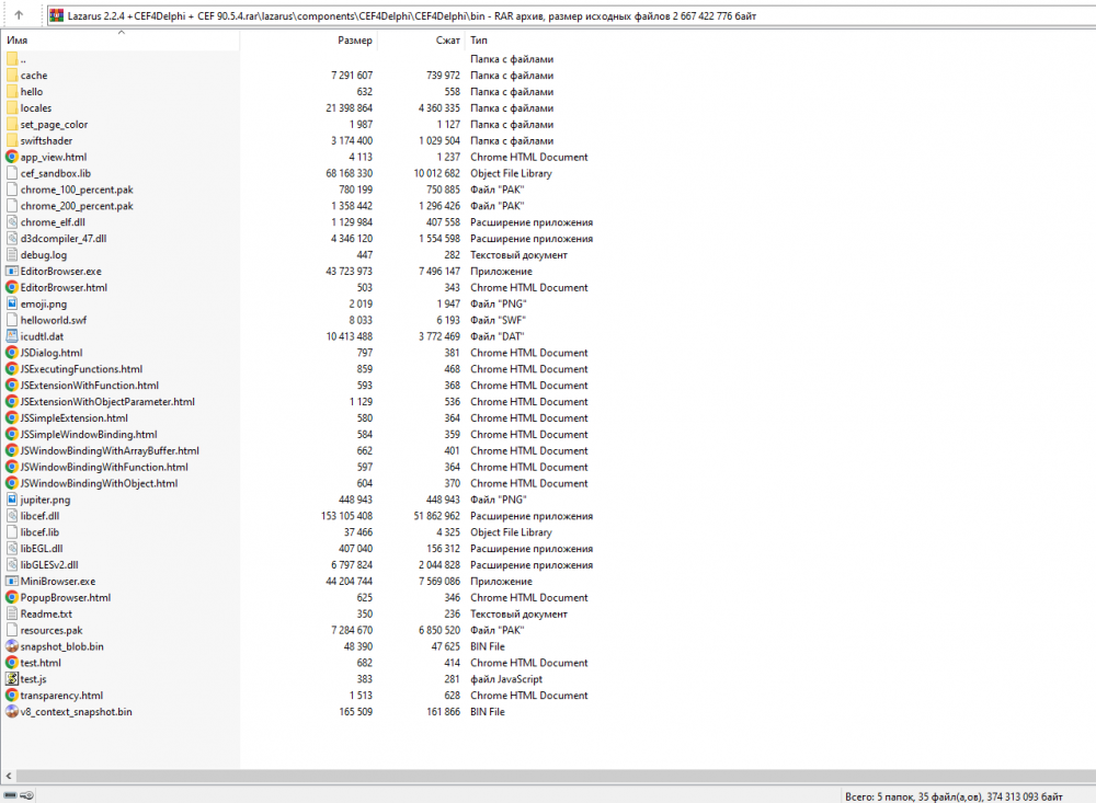- CEF 90.5.4: Бинарный файл Chromium Embedded Framework версии 90.5.4, который обеспечивает мощный механизм встраивания браузера в приложения с помощью Lazarus.
