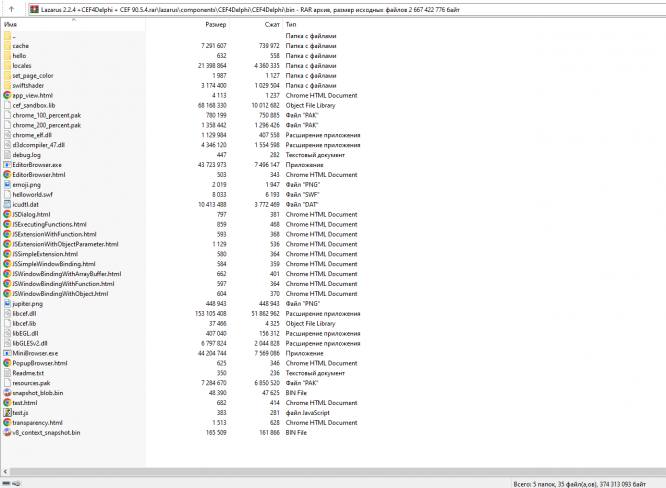 3. CEF 90.5.4: Бинарный файл Chromium Embedded Framework версии 90.5.4, который обеспечивает мощный механизм встраивания браузера в приложения с помощью Lazarus.
