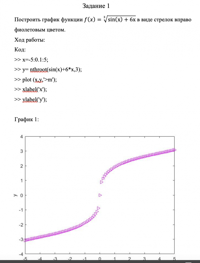 1. Построить график функции в виде стрелок вправо фиолетовым цветом.