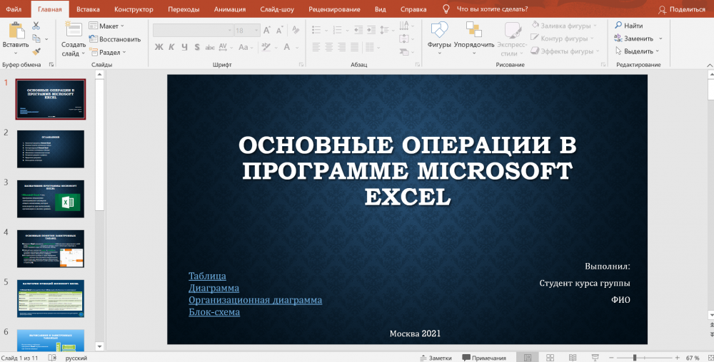 Презентация по информатике на тему "Основные операции в программе Microsoft Excel". По мимо профессионального раскрытия темы работы, в презентации соблюдены следующие требования: