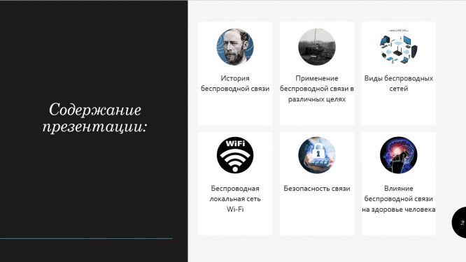 Данная презентация отлично подойдёт для отчёта, поскольку содержит большое кол-во тематических изображений, а также вся самая важная информация находится на самих слайдах.
