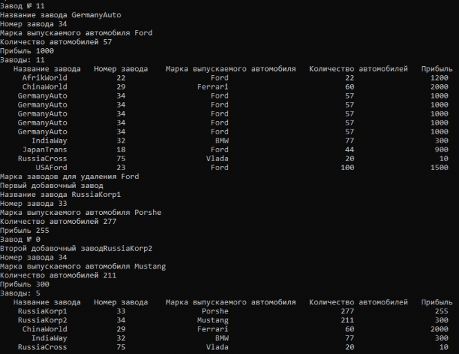 Pascal. Задан список автозаводов: название завода, номер завода, марка выпускаемого автомобиля, количество автомобилей, прибыль. Удалить из списка заводы, выпускающие автомобиль заданной марки, и добавить два новых автозавода в начало списка.