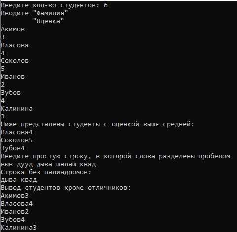 Главная » Учебные материалы » Информатика » Решения задач » МГТУ им. Н.Э.Баумана » 1 семестр » Pascal. 1) Реализовать функцию, возвращающую результат проверки строки на палиндромиальность. 2) Осуществляя ввод по концевому значению, ввести с клавиатуры массив записей с полями: ”фамилия”, “оценка”. Распечатать информацию обо всех студентах, чьи