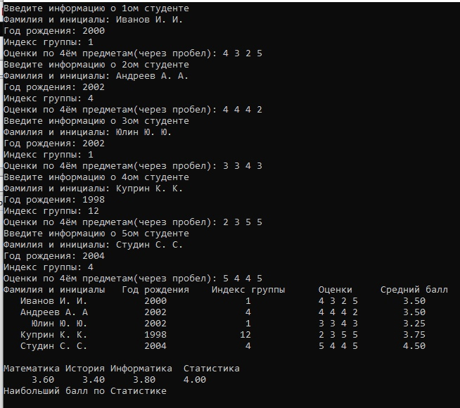 Pascal. Создать массив из пяти элементов, в котором каждый элемент представляет собой информацию об отдельном Студенте. Эта информация включает: 1)Фамилию и инициалы; 2)Год рождения; 3)Индекс группы; 4)В виде массива, каждый элемент которого явля