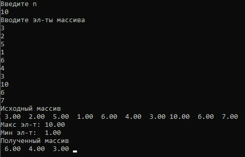 Pascal. Составить программу, которая переписывает из одномерного массива A, в одномерный массив B все элементы, расположенные Между минимальным и максимальным элементами. Вывести исходный и полученный массивы, минимальный и максимальный элементы.