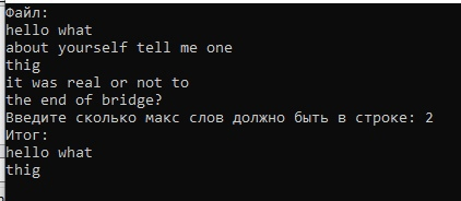 Главная » Учебные материалы » Информатика » Решения задач » МГТУ им. Н.Э.Баумана » 1 семестр » Pascal. По содержимому данного файла нужно сформировать новый текстовый файл, в который попадают строки исходного файла с Количеством слов меньше заданного.