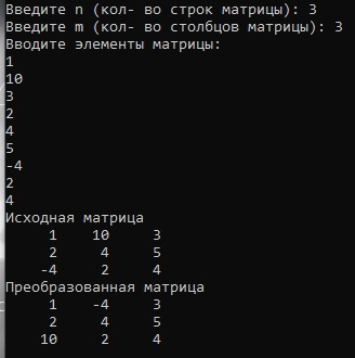 2) Процедуру перестановки максимального и минимального элементов матрицы.