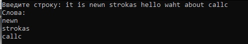 Задана строка произвольной длины из строчных латинских букв. Разработать функцию, которая из строки выбирает слова, начинающиеся и заканчивающиеся на одну и ту же букву. В главной функции результаты вывести на экран.