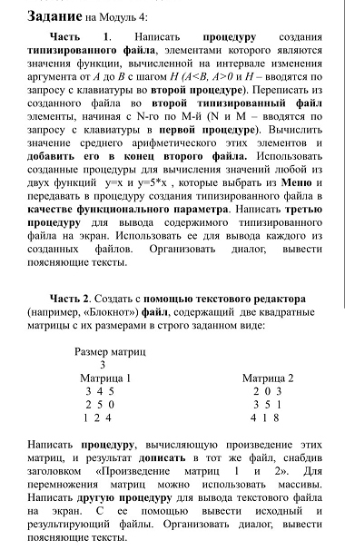 Задача: Pascal. Задание на модуль.