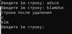 В двух заданных с клавиатуры строках (string) удалить символы, имеющиеся в