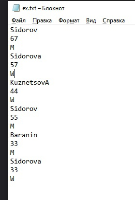Pascal. Написать программу, которая считывает информа- цию из текстового файла в массив записей вида: TYPE people = record fam : string[20]; {фамилия} old : byte; {возраст} WM : char; {М/Ж} end; Составить подпрограмму, определяющую записи, для в кото
