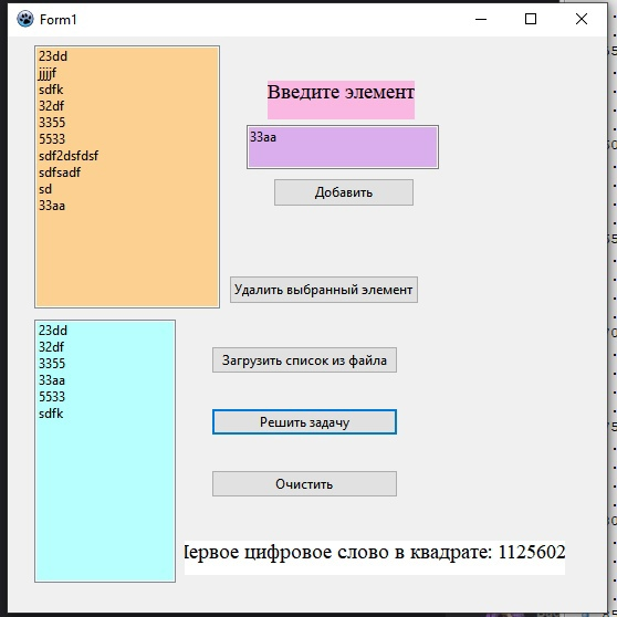Составить массив из 4-символьных слов, расположив их по алфавиту. Найти первое цифровое слово и возвести его значение в квадрат