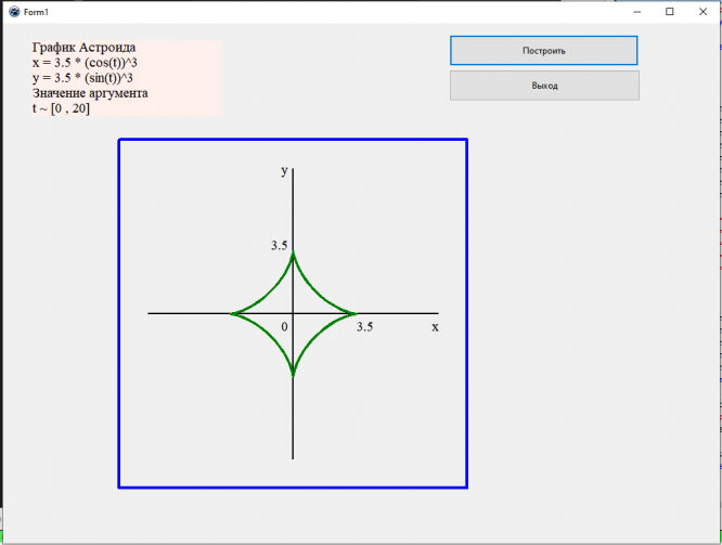 Протабулировать функцию на отрезке для вводимого числа точек п<= 30. График Астроида, значение аргумента от 0 до 20.
