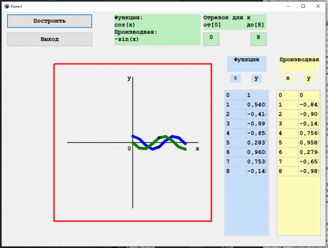 Для студентов МГТУ им. Н.Э.Баумана по предмету ИнформатикаПостроить графики функции и производной различными цветами для заданных отрезков. Создать анимацию движения точки по двум графикам.Построить графики функции и производной различными цветами для заданных отрезков. Создать анимацию движения точки по двум графикам.