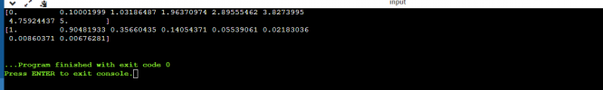 Результат выполнения программы покажет массивы значений времени и решения дифференциального уравнения в точках времени.