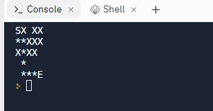 Программа на Python, которая генерирует случайный лабиринт размером N на N и находит путь от начальной точки до конечной точки с помощью алгоритма поиска в ширину: Эта программа использует генератор случайного лабиринта, алгоритм поиска в ширину и выводит лабиринт и путь на экран. Код разбит на несколько функций для повышения читаемости и удобства тестирования. Верный путь обозначается «*». Часто генерируются лабиринты без возможного верного пути, чтобы добиться лабиринта с выходом нужно либо уменьшить размер лабиринта и запускать программу пока не сгенерируется нормальный лабиринт. При размере лабиринта 5*5: A Python program that generates a random N by N maze and finds a path from the start point to the end point using the breadth-first search algorithm: This program uses a random maze generator, a breadth-first search algorithm, and displays the maze and path on the screen.