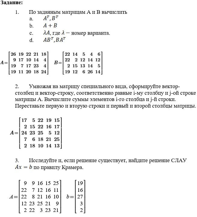 Задача: Решение задач линейной алгебры в пакете "MathCad"