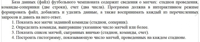 Задача: База данный (файл) футбольного чемпионата содержит сведения о матчах...