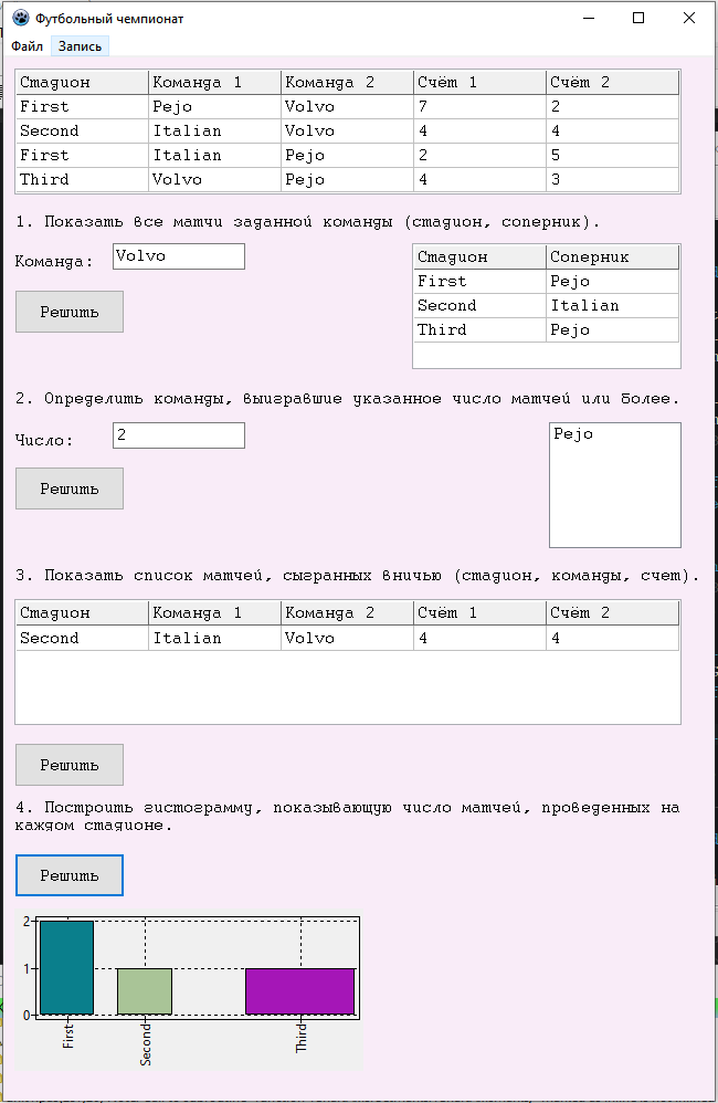 Главная » Учебные материалы » Информатика » Решения задач » МГТУ им. Н.Э.Баумана » 2 семестр » База данный (файл) футбольного чемпионата содержит сведения о матчах...