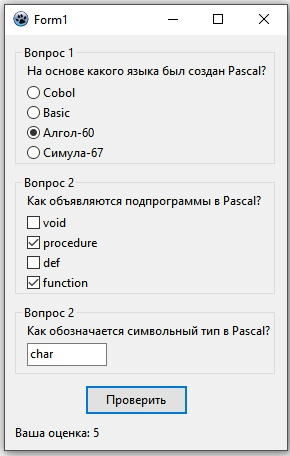 Главная » Учебные материалы » Информатика » Решения задач » МГТУ им. Н.Э.Баумана » 2 семестр » Разработать программу для проведения тестов по какой-либо дисциплине.