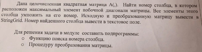 Lazarus. Целочисленная квадратная матрица. Найти номер столбца с максимальным элементом побочной диагонали. Все элементы этого столбца умножить на его номер. Вывод, функции поиска и преобразования
