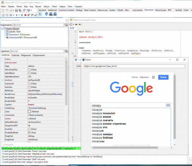 Проект Браузера в Lazarus / Web browser в Lazarus (fpCEF3). Готовый проект, код и программа. (fpCEF3 + runtime client) Chromium Embedded Framework (CEF). На cef_binary_3.2526