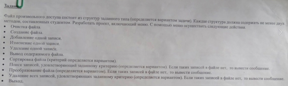 Задача: Lazarus. Файл произвольного доступа, структура - ромб. Реализовать меню с подпрограммами. вариант 9