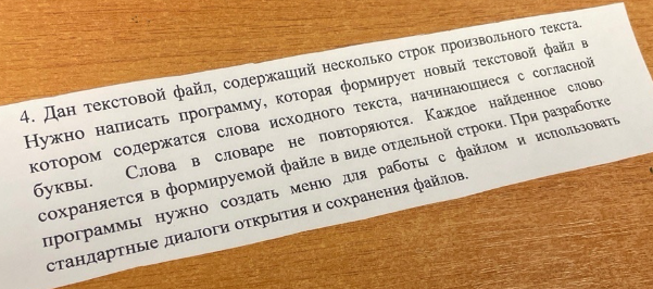 Задача 4: Lazarus. Дан текстовый файл - создать новый, для начинающихся с согласной, каждое слово = отдельная строка. Меню.