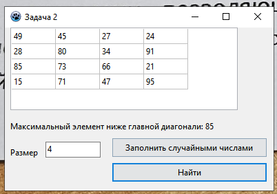 Lazarus. Разработать программу, позволяющую создавать квадратную матрицу из целых чисел и находить максимальный из элементов ниже главной диагонали.