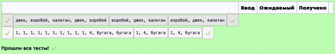 Обратите внимание, что в примере у первого слова "воробей" стоит запятая, а у второго - нет. В решении такие случае следует учесть. Кроме того, слова могут быть написаны в разном регистре. Вывести их нужно в нижнем регистре. Одинаковые слова, написанные в разных регистрах, считаем одинаковыми.
