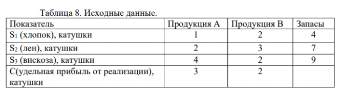 Главная » Учебные материалы » Информатика » Решения задач » Несколько классов/семестров » Предприятие выпускает ткань двух видов. Для их производства используется сырье трех видов: хлопок, лен и вискоза